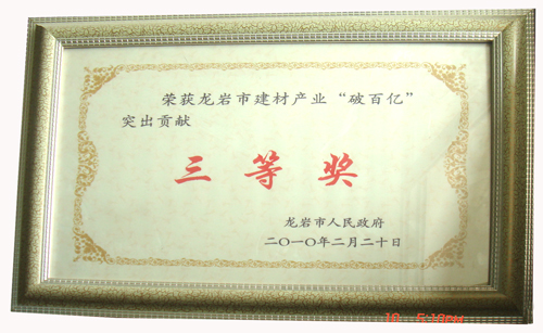龙岩市建材产业“破百亿”突出贡献三等奖